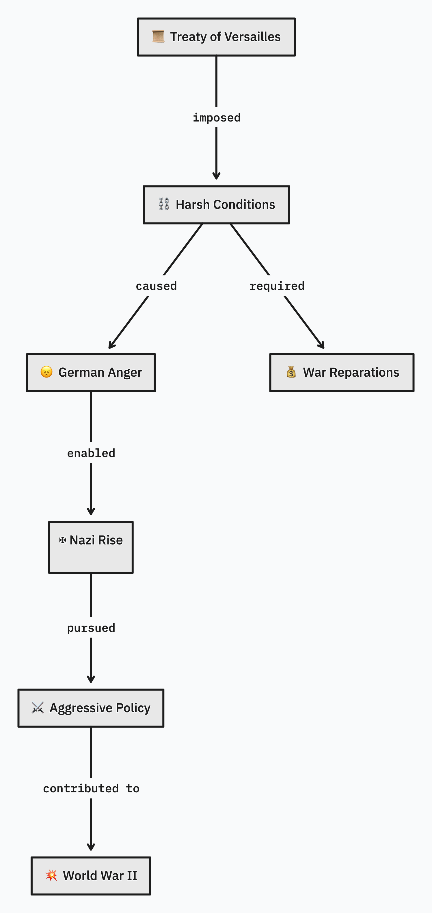 One way to explicitly teach connections is to visualise them. For example, here I can lay out visually how the Treaty of Versailles was a contributing factor to World War Two (create your own here).